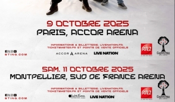 We are delighted to confirm a further two European dates on the 'Sting 3.0' tour in France in October 2025. These will be in Paris at the Accor Arena on 9 October and in Montpellier at the Sud de France Arena on 11 October. The shows will go on presale to Sting.com members at 10am local on Tuesday, 17 December and on public sale at 10am local on Friday 20 December...
