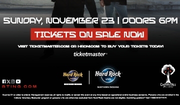 Today, 17-time Grammy Award winning artist Sting has added a new performance to his highly revered “STING 3.0” World Tour, presented by the Cherrytree Music Company and Live Nation with a show in Gary, IN on Sunday, November 23 at Hard Rock Live Northern Indiana...